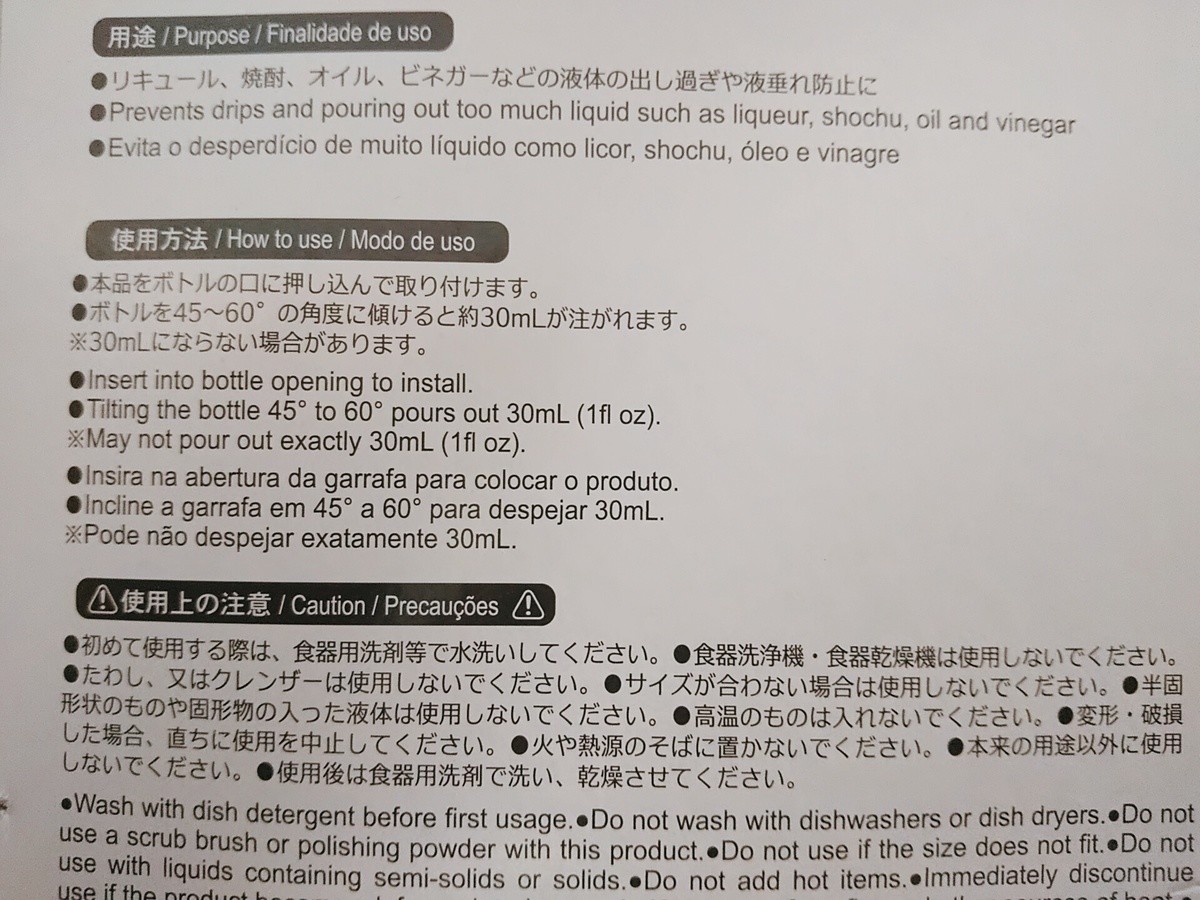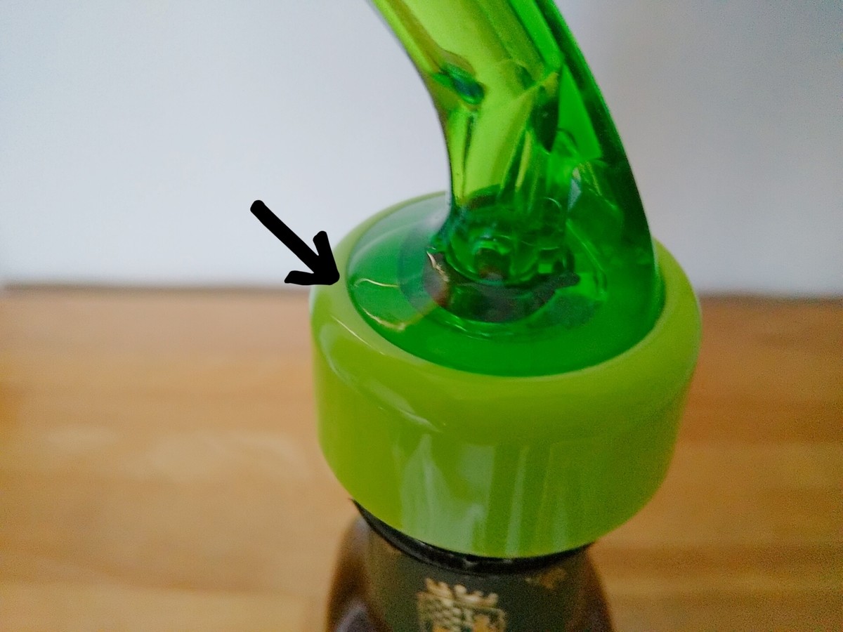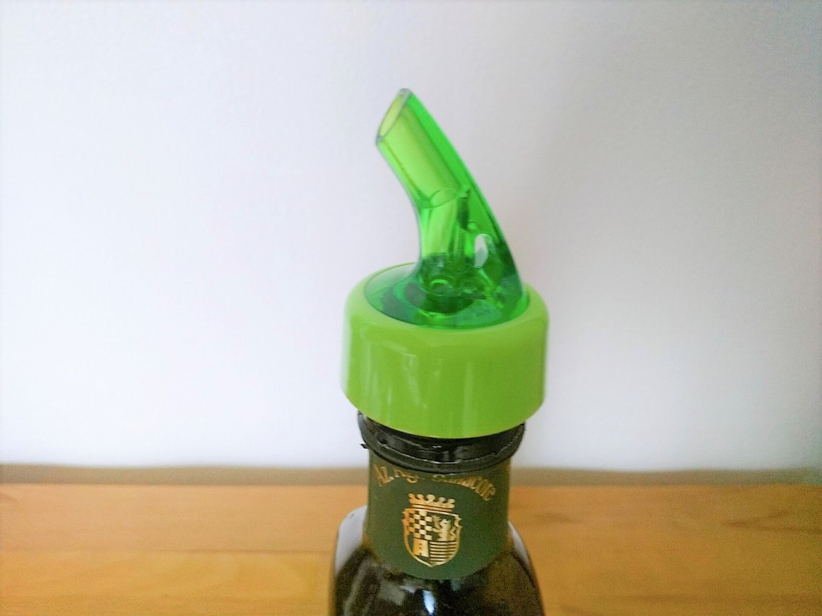 オイルやビネガーなどの瓶の口に取り付けるキャップで、中身の出しすぎを防止する商品です。