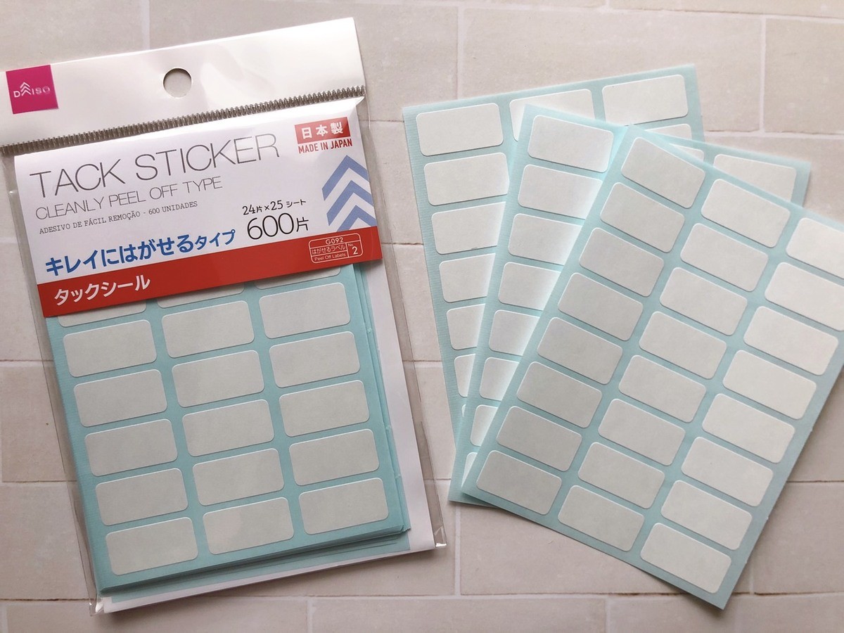 こちらは、キレイにはがせるタックシール(100円)。年間300近い100均の商品を実際に買ってリサーチしている私が、一生リピ買いするつもりの商品です。