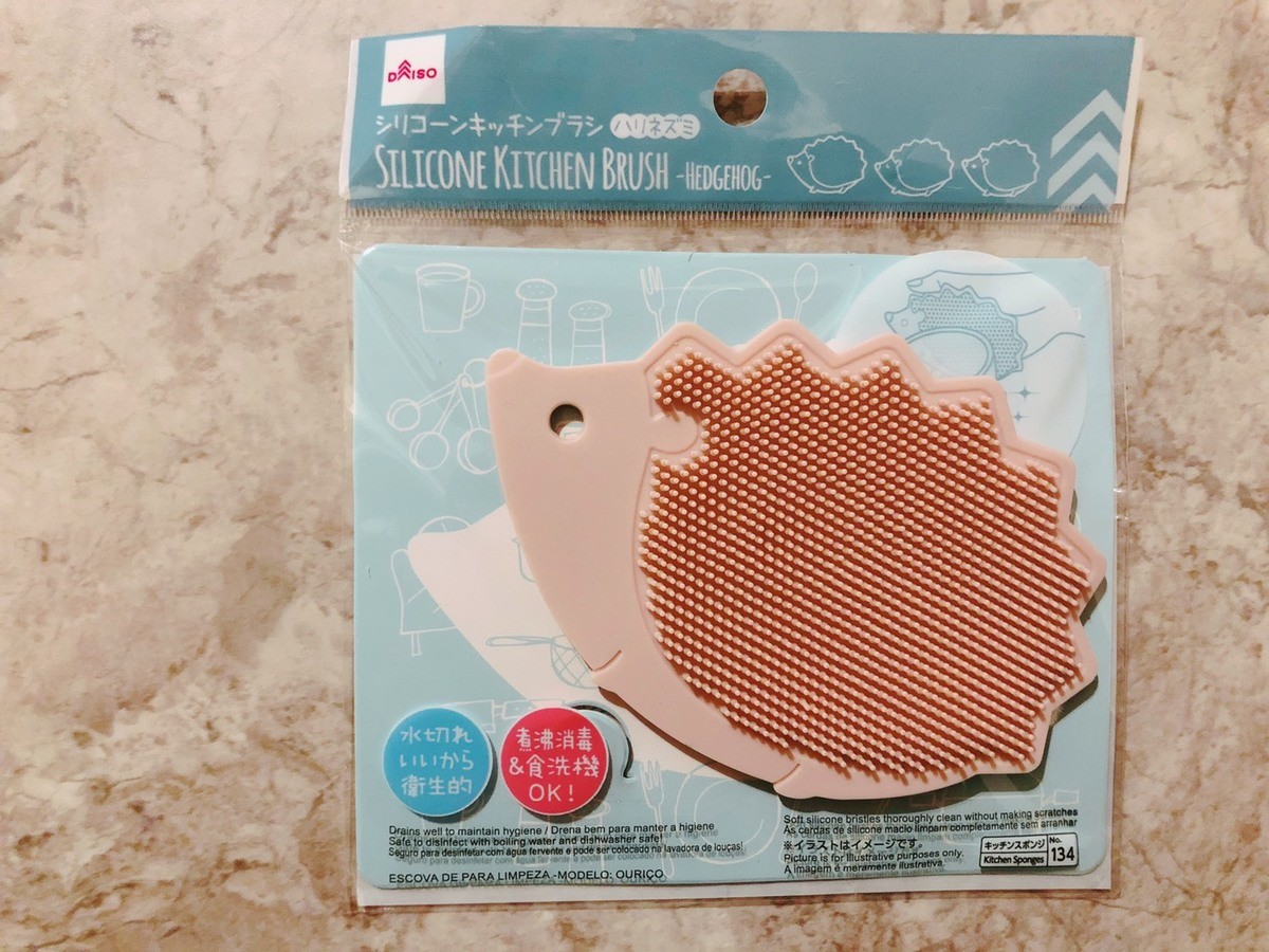 いわずとしれたスリーコインズのメガヒット商品「シリコーンたわし」と似たような商品が実はダイソーにもあります!それがこの“シリコーンキッチンブラシ(100円)。