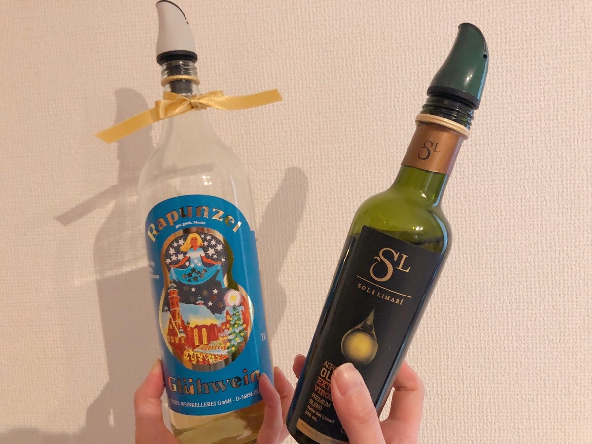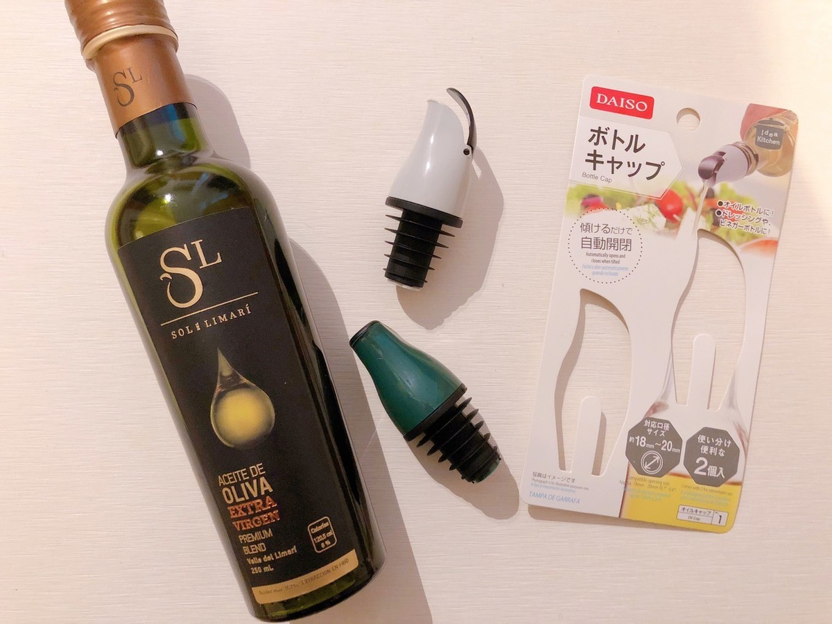 オイルボトルやドレッシングボトル、ビネガーボトルなどのキャップを外して、かわりにスポッと挿し込むだけで装着完了。