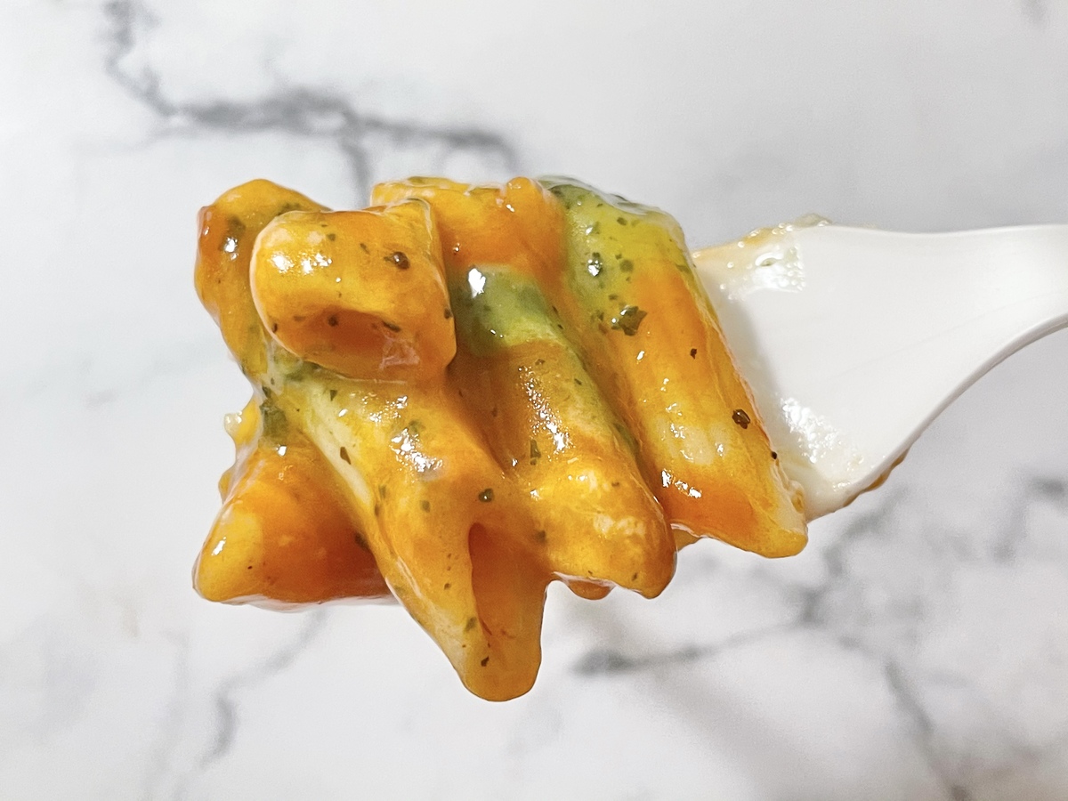 このバジルソースはところどころ味がする感じだったので、最初に全体的に混ぜるのが良いかもしれません。
