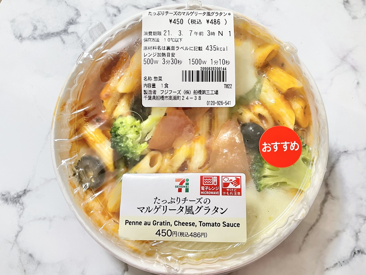 セブンイレブンで買える「たっぷりチーズのマルゲリータ風グラタン」をご紹介しました。