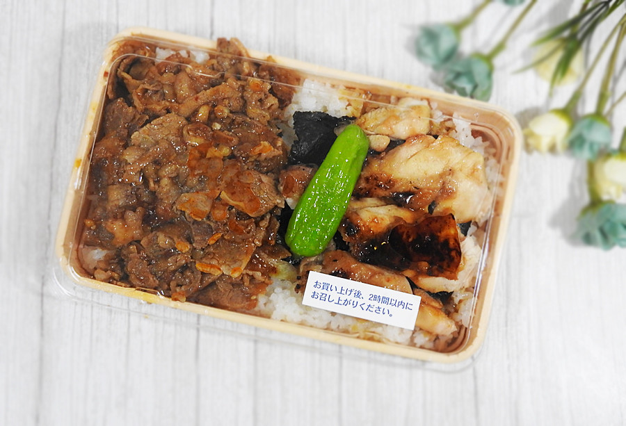 続いては、2月26日(金)に新登場した「やきとり×牛焼肉」メニューの「やきとりと牛焼肉弁当」を紹介します。