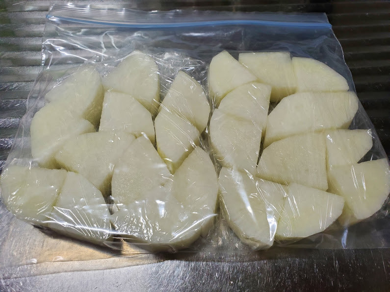 いちょう切りと同様で、表面の水分をキッチンペーパーでふき取り、小分けにしてラップで包み、密閉式の保存袋に入れ、空気を抜いてから保存しましょう。