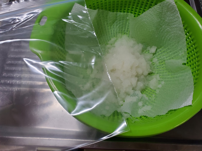 大根おろしも冷凍できます。ざるにキッチンペーパーをしき、余分な水分を軽く切りましょう。