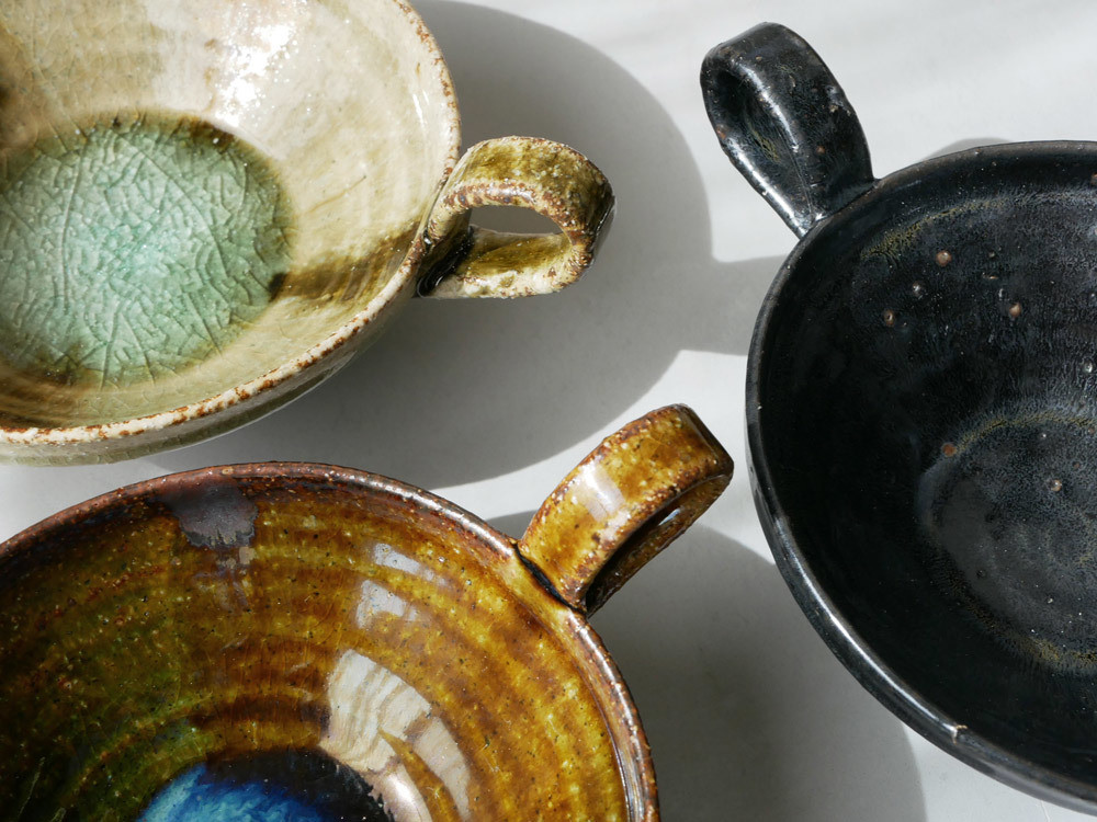 成形から釉薬の調合、絵付けまで、一つ一つ手作りされた南窯の「スープカップ」。