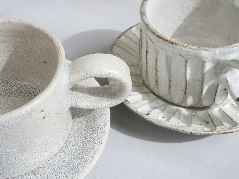 【兵山窯】錆かいらぎ コーヒー碗/1,540円・まる皿(S)/770円 【兵山窯】しのぎ コーヒー碗/1,760円・まる皿(S)/1,100円(税込)