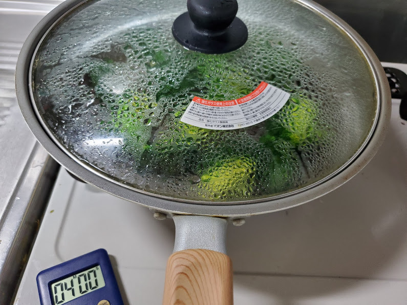 実際にブロッコリー1房をフライパンで蒸していきます!