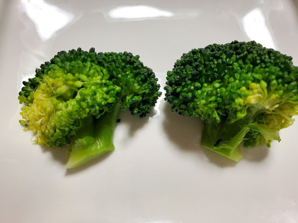 冷ましたブロッコリーを見比べてもあまり大差ないように見えますが、食べ比べると水気の違いにびっくり!