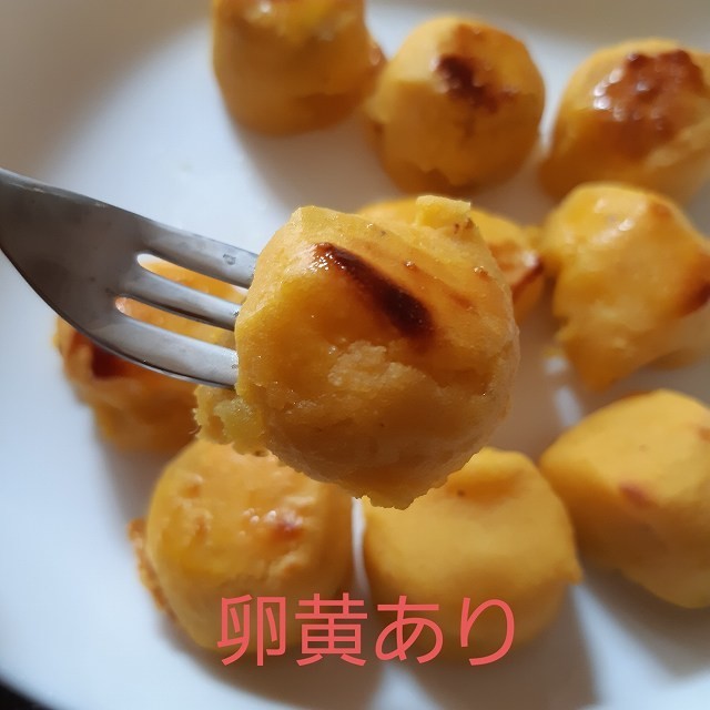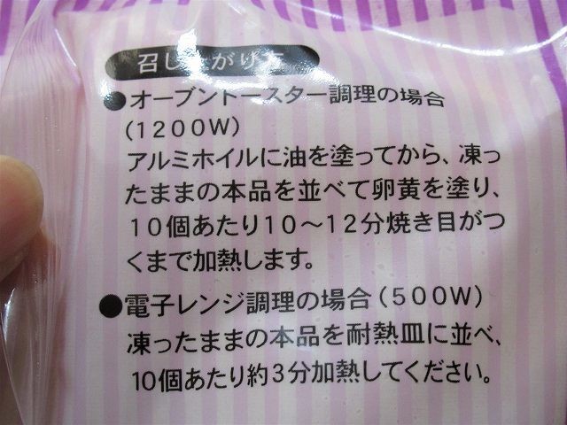 パッケージの作り方には、凍ったままのスイートポテトに卵黄を塗り、10個あたり10~12分ほど焼くと書いてありますので、まずはその通りにしてみましょう。