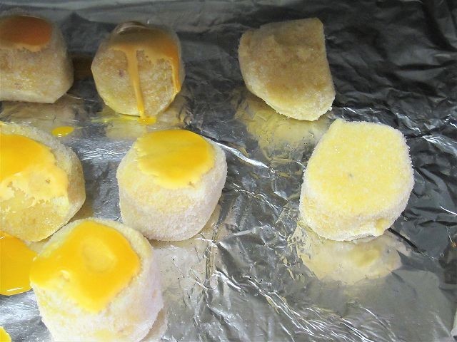 今回は、卵黄を塗った方がアルミホイルからはがすのに苦労しましたので、個人的には卵黄なくても◎。