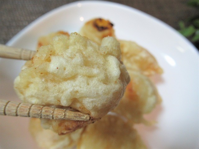 天ぷら衣がサクサクとした口当たりで、スイートポテトが餡のような役割。まるでさつまいも餡のサクサクとしたお菓子をたべているみたい。