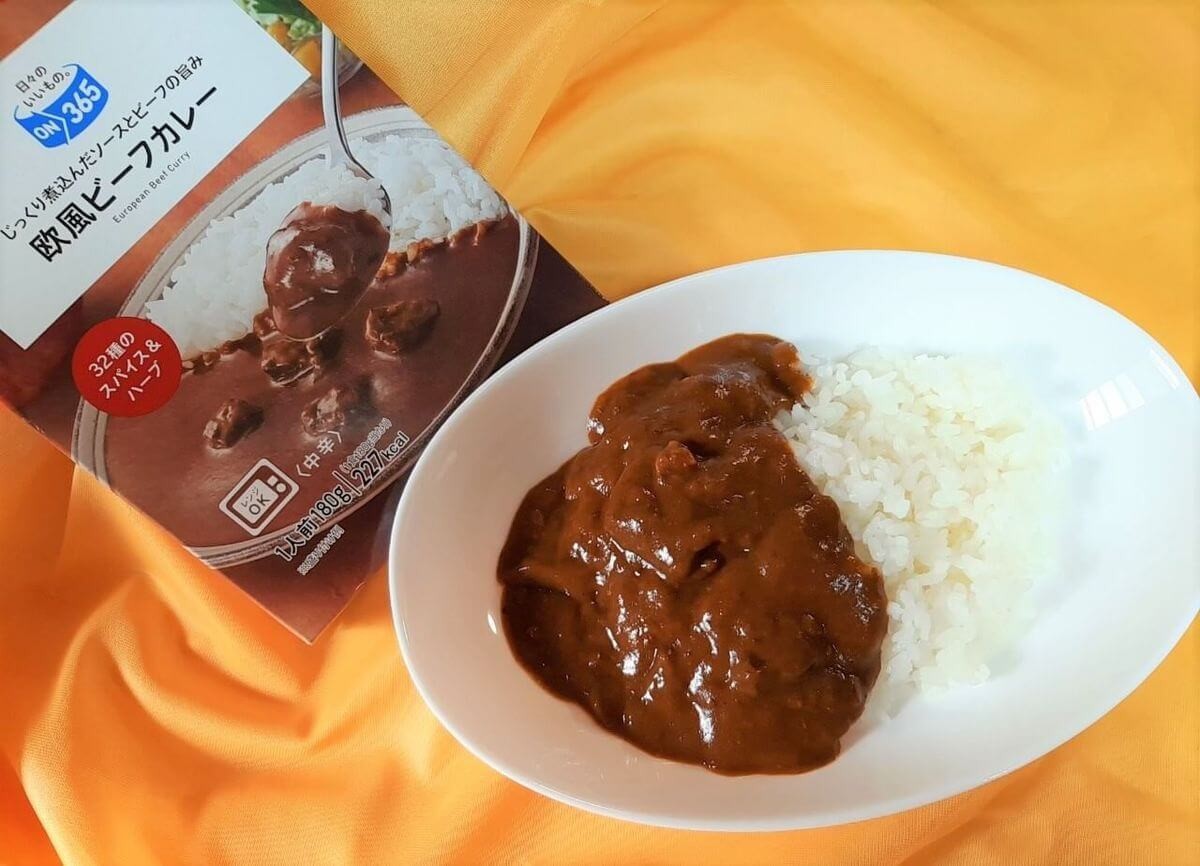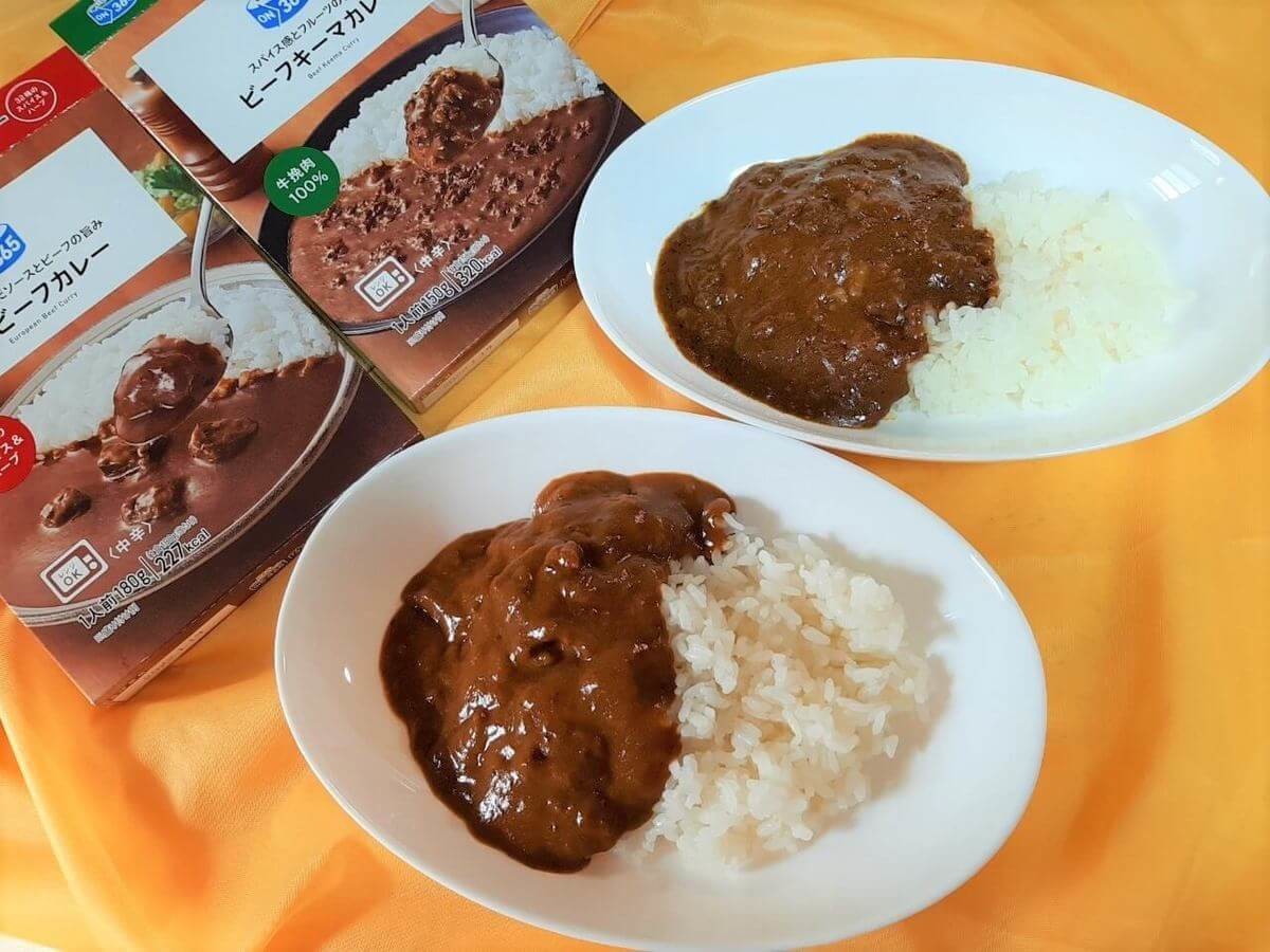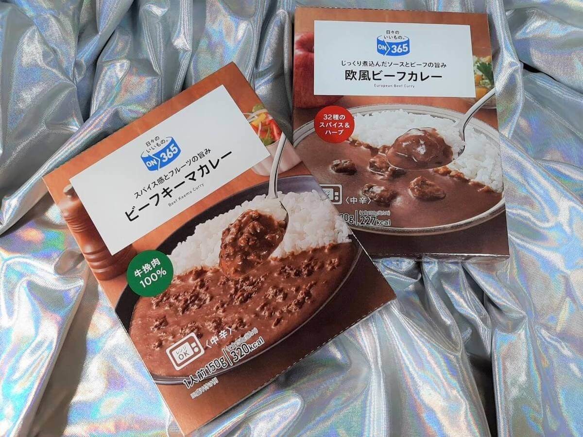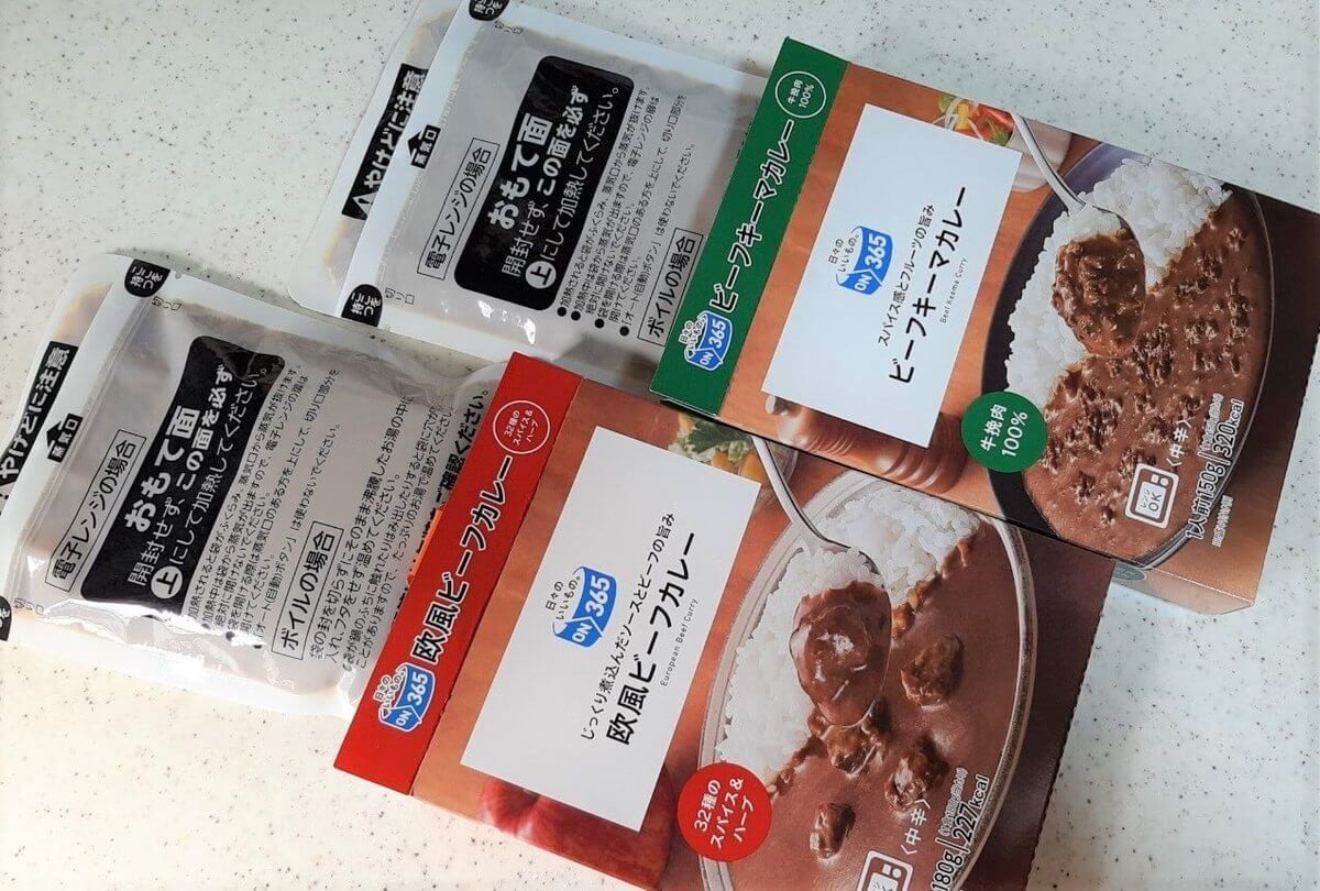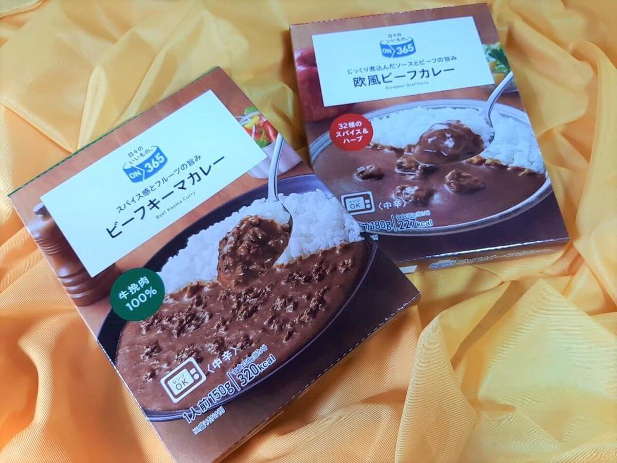 on365のレトルトカレー。ビーフキーマカレーと欧風ビーフカレーの2種類から選べます。