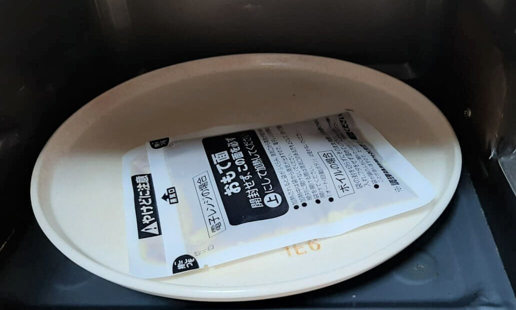 電子レンジ500wで1分20秒、600wで1分10秒です。キーマよりも10秒長いのは、具材が大きいからでしょうか。 それでも1分ほどでできるのは、うれしいポイントです。