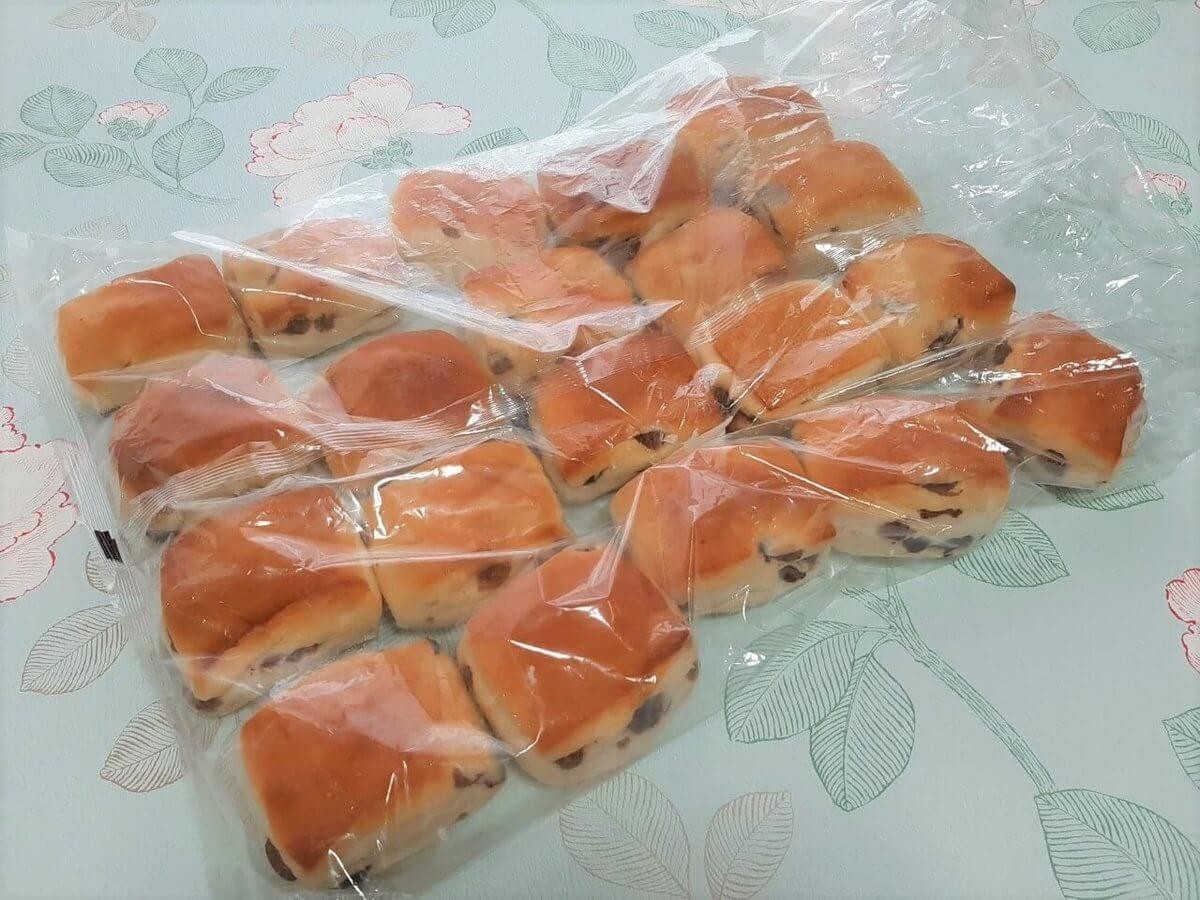 ホテルの朝食用ロールパンと同じく、大きめの透明袋入りです。