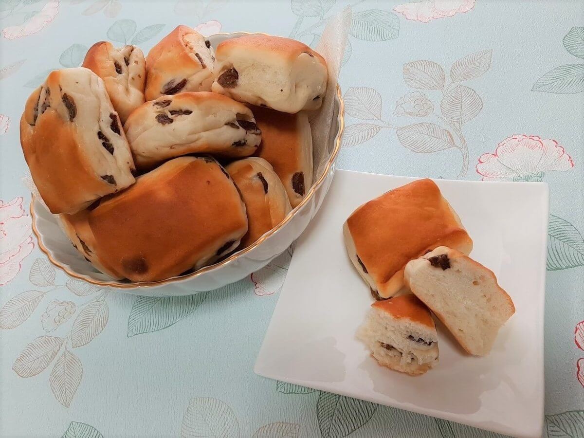 レーズンロールパンはその名の通りレーズンがロールパンに練りこまれています。