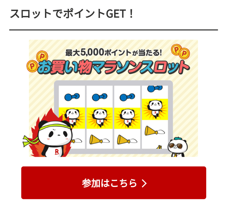 楽天お買い物マラソン開催中は、楽しみながらポイントアップを狙えるキャンペーンが盛りだくさん! 中でも「お買い物マラソンスロット」は、楽天ポイントが大量に当たるビッグチャンスです。