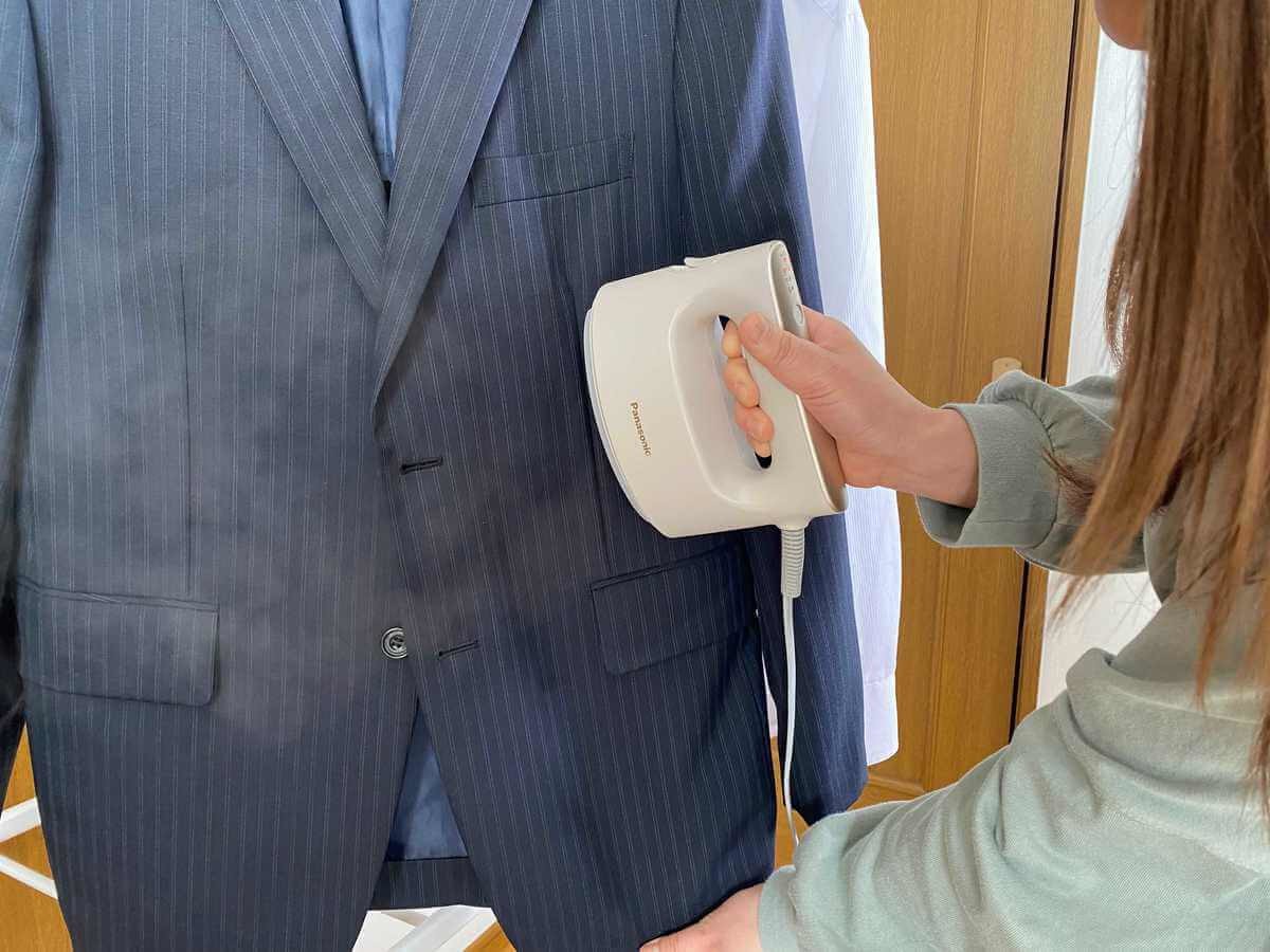 夫の出勤前、「衣類スチーマー」をスーツやスラックスのケアに使っています!