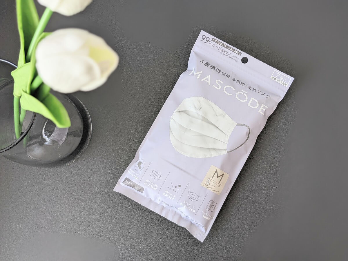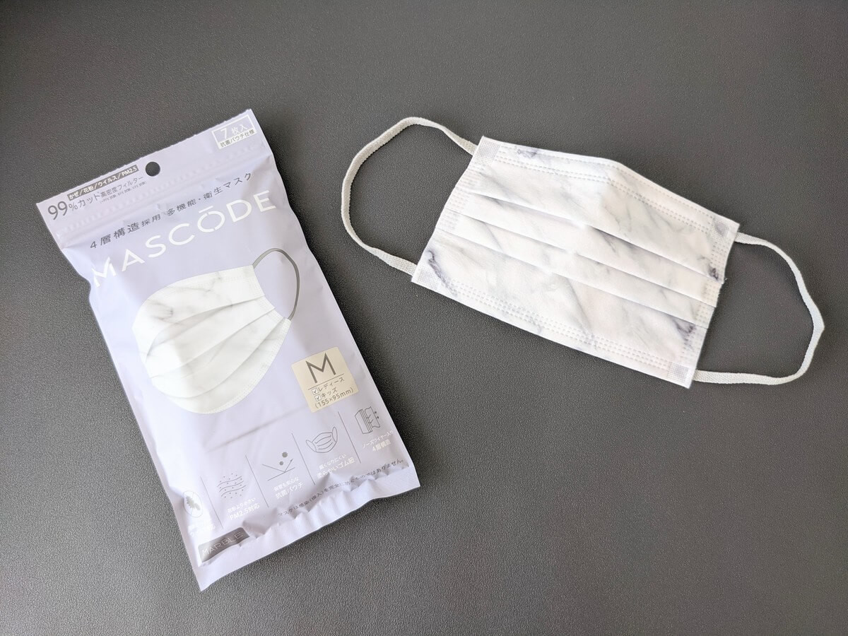 - マスコード「不織布マスク 大理石 Mサイズ 7枚入り」550円(税込)
