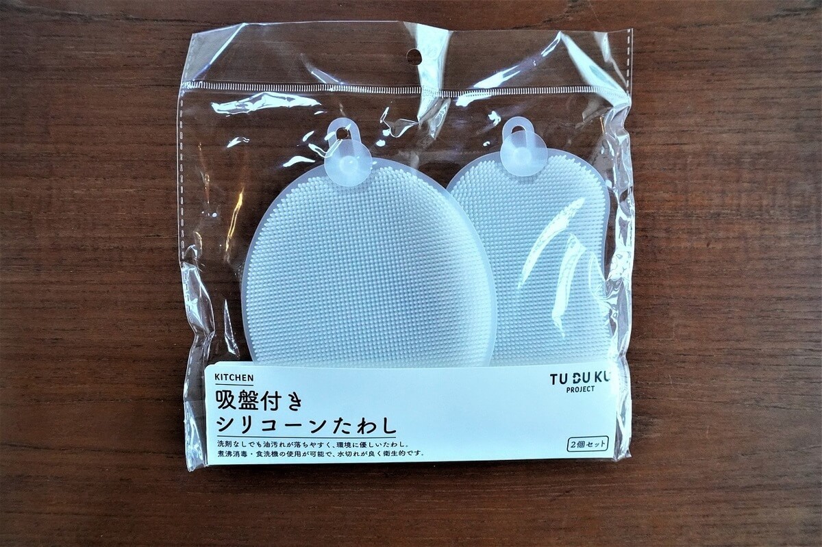 吸盤付きで狭い洗面所に収納もしやすいと思いましたが、吸盤もすぐに取れてしまい、気が付くと床にシリコーンたわしが落ちてしまっていることが多々……。