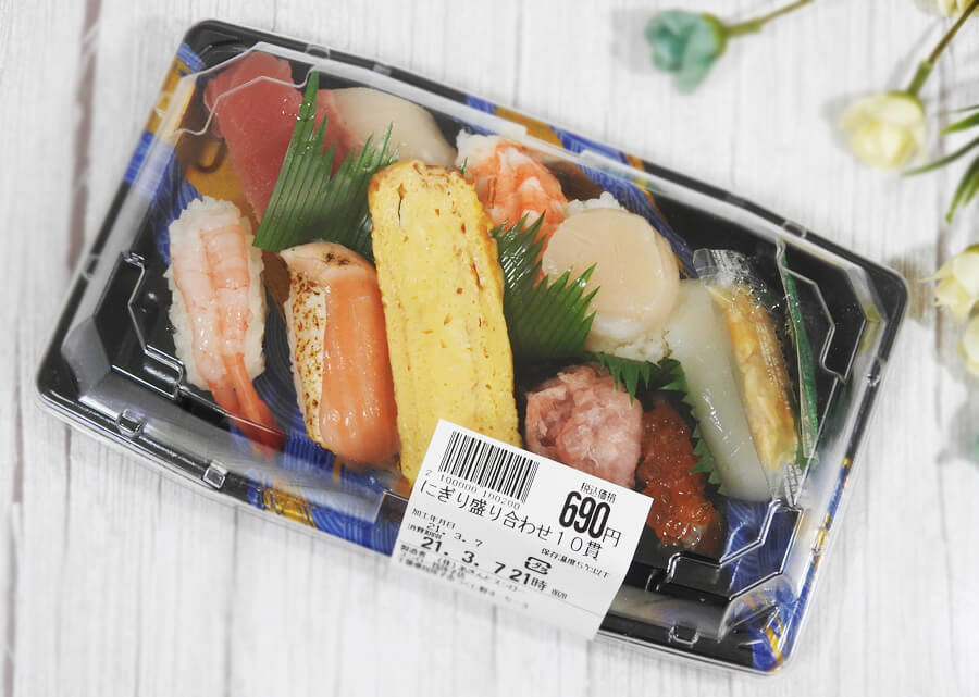 何を買おうか迷った挙句、無難そうなにぎりが10貫入っている「にぎり盛り合わせ10貫」690円(税込)を買ってきました。