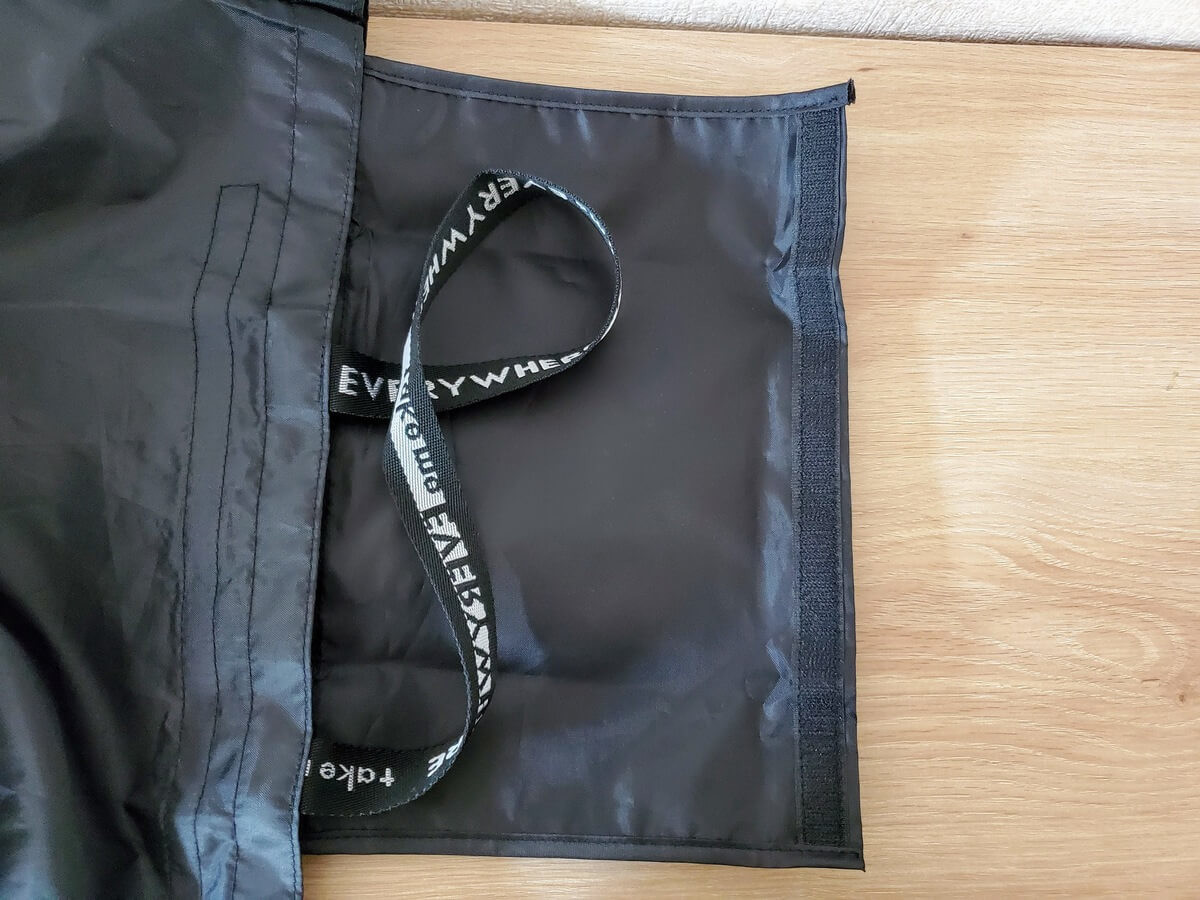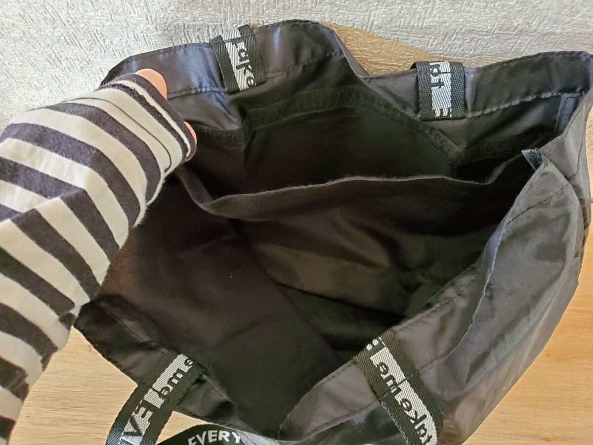 かなりヘビロテしているこちらのエコバッグですが、たくさん買い物をする時などは、容量が小さいのが残念なところ。