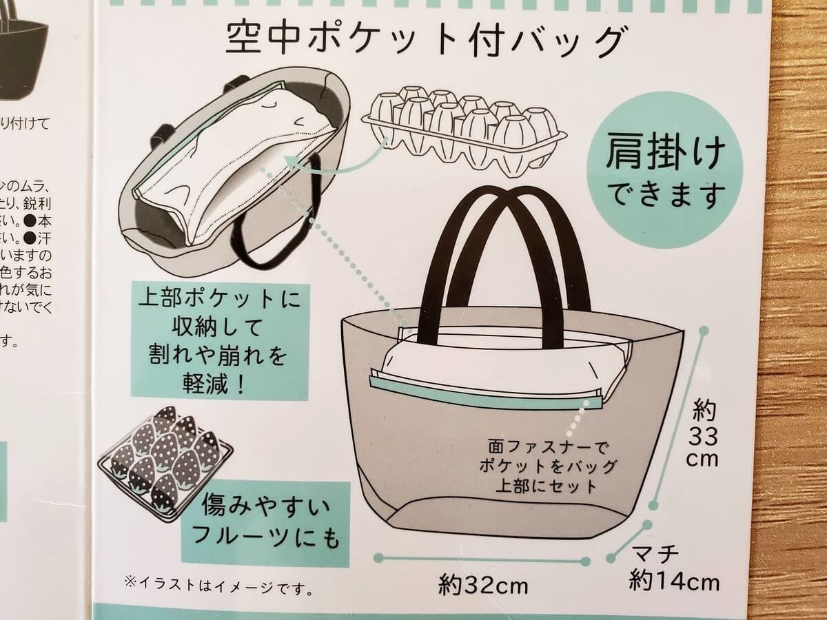 卵を買って帰宅した時の「あ、割れてる……」という悲しいアクシデントから守ってくれる、こちらの「空中ポケット付きバッグ」。