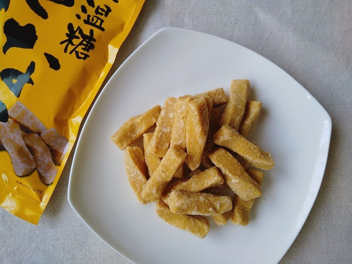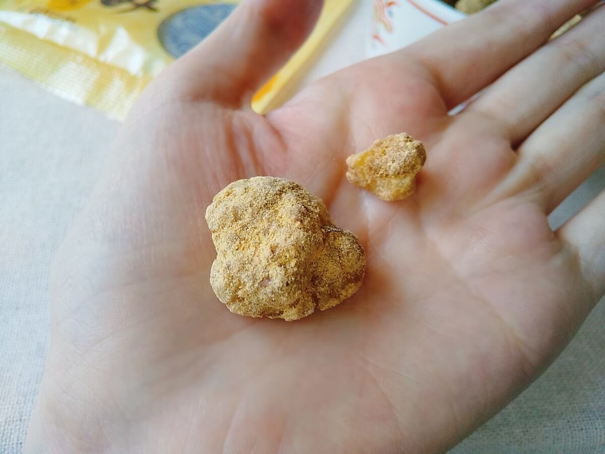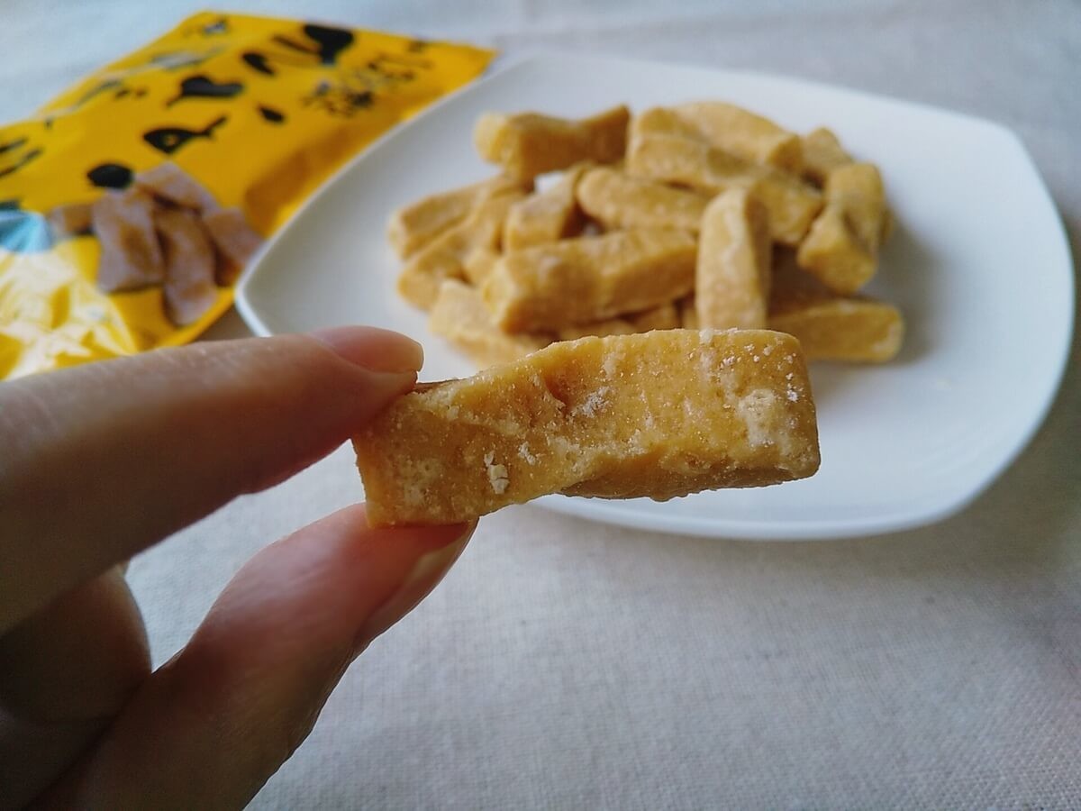 口の中に入れると、きなこのやさしい風味がふんわりと広がります。 咀嚼するとシャリシャリとした食感がして、きなこの香ばしさがさらにアップ。 昔懐かしい、駄菓子のような素朴な味わいがします。