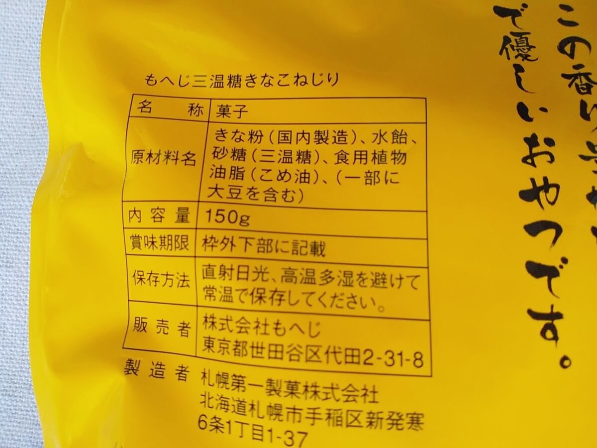 余談ですが、製造者の札幌第一製菓(株)のホームページを訪れると、興味深い情報が記載されていました。 こちらの会社はきなこねじり一筋の、きなこねじり専門店。 また、「ねじり加工」は職人さんが一つひとつ手作業で行っているという驚愕な情報も! てっきり機械製造だと思ってました。これからはもっと丁寧に食べよう……。