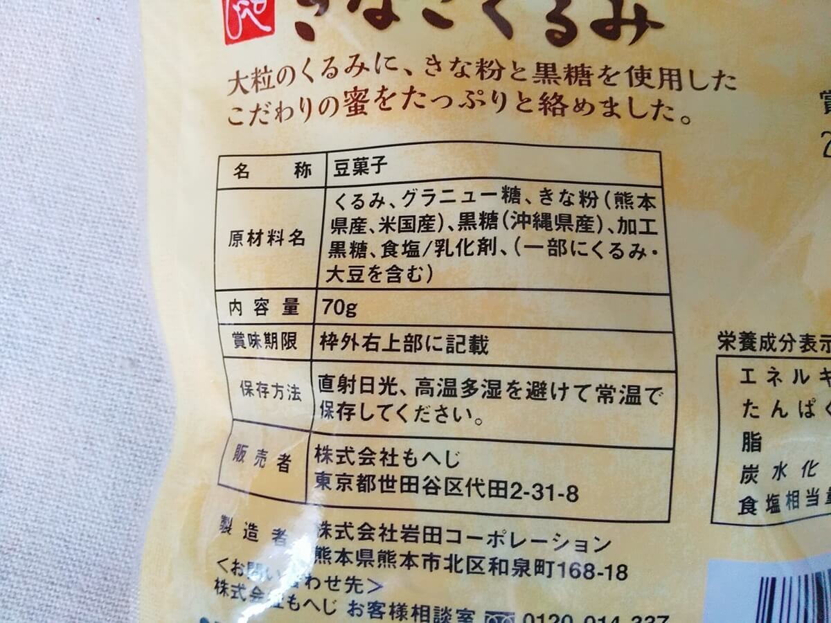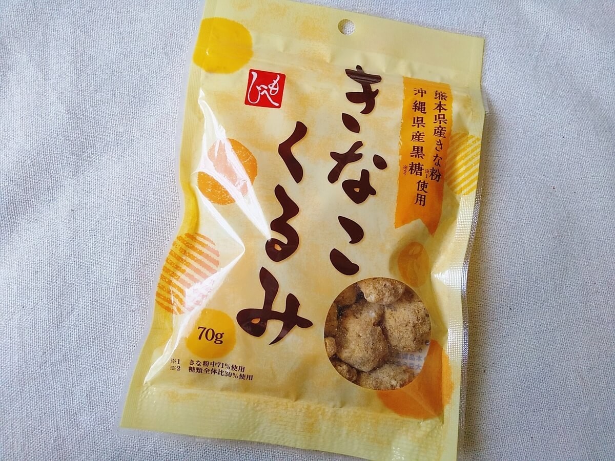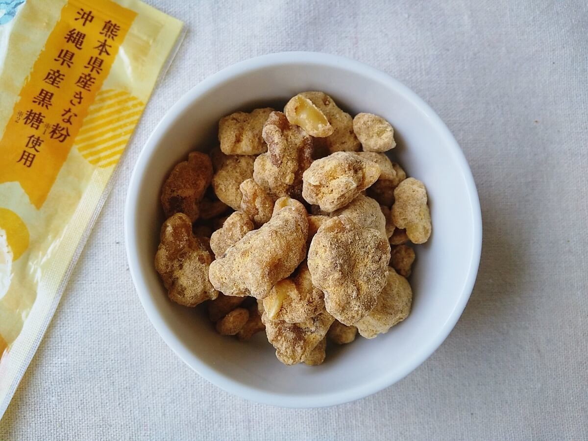 くるみ好きなら、こちらも見逃せません! 「きなこくるみ」は、くるみに黒糖ときなこをまぶしたお菓子です。 黒糖は沖縄県産、きなこは熊本県産が使用されているとのこと。