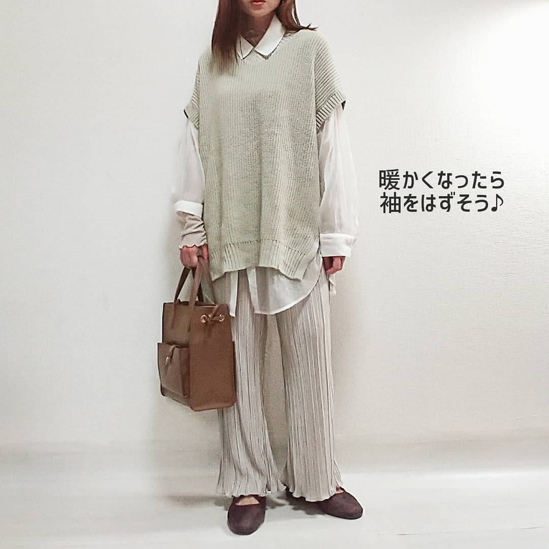 インナーはベージュを合わせて、春気分の優しげな雰囲気に♪