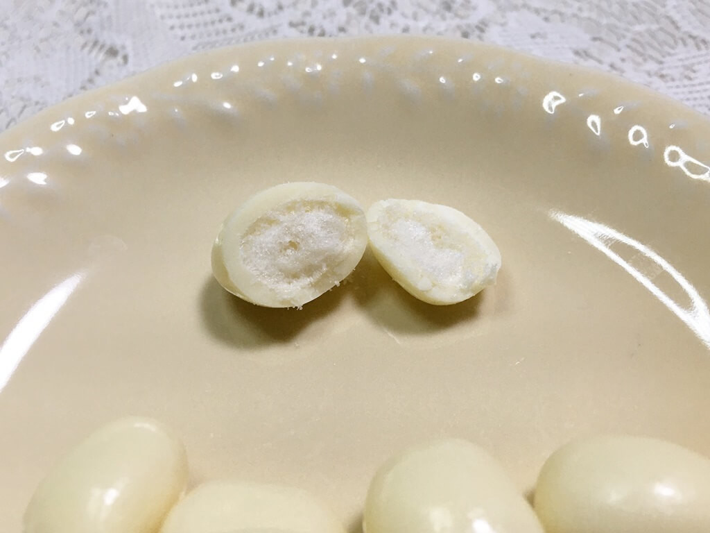 半分に割ってみると、ホワイトやいちごと違ってちょこあられの周りに白い部分が。