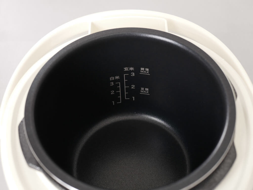 また、炊飯モードで使うときにお米を計るのに便利な計量カップも付属しており、白米は最大3合まで炊くことができます。