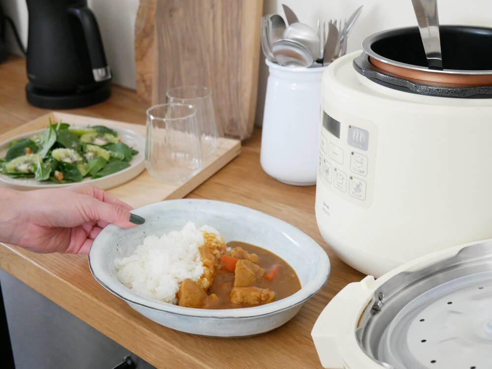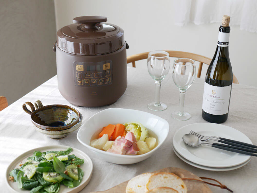 材料を入れてボタンを押すだけ!いつものおかずから本格煮込み料理まで、自動調理でできあがる「マルチ圧力クッカー」。3~4人ご家族分のご飯を“ほったらかし調理”でかんたんに作れるので、毎日にゆとりが生まれちゃう調理家電のご紹介です。