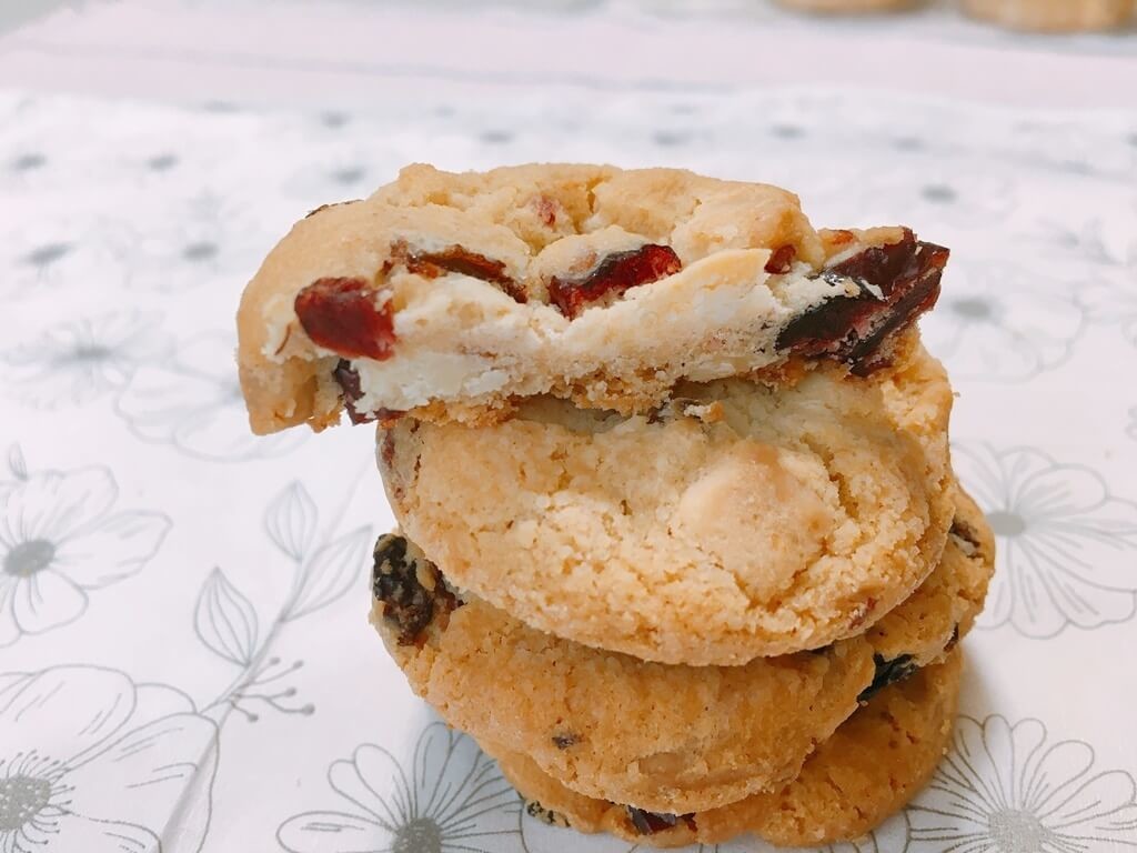 クッキー地のほうが少ないんじゃないか?と思うほど、ホワイトチョコとクランベリーがぎゅぎゅっと詰まっていました。