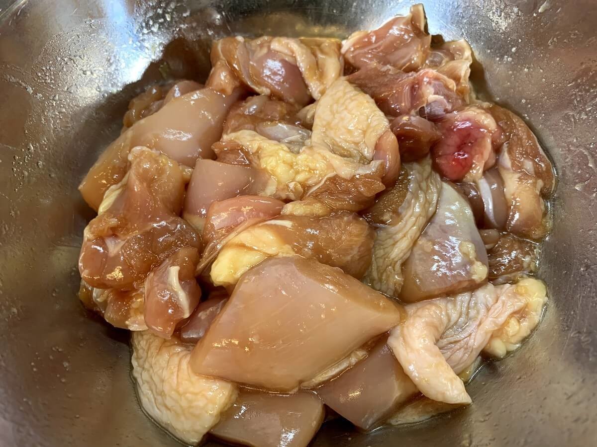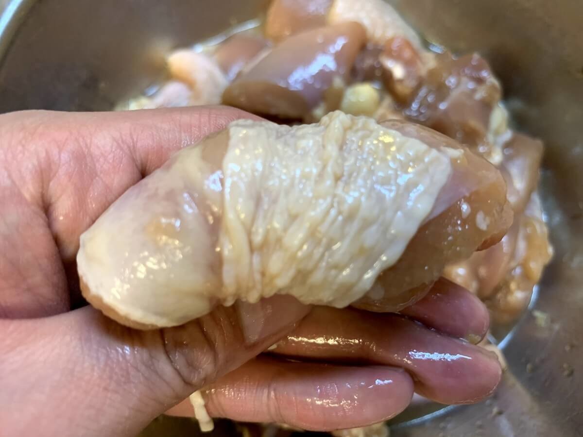 鶏肉をタレに漬け込む時に「繊維を壊すように揉み込む」のがポイント!