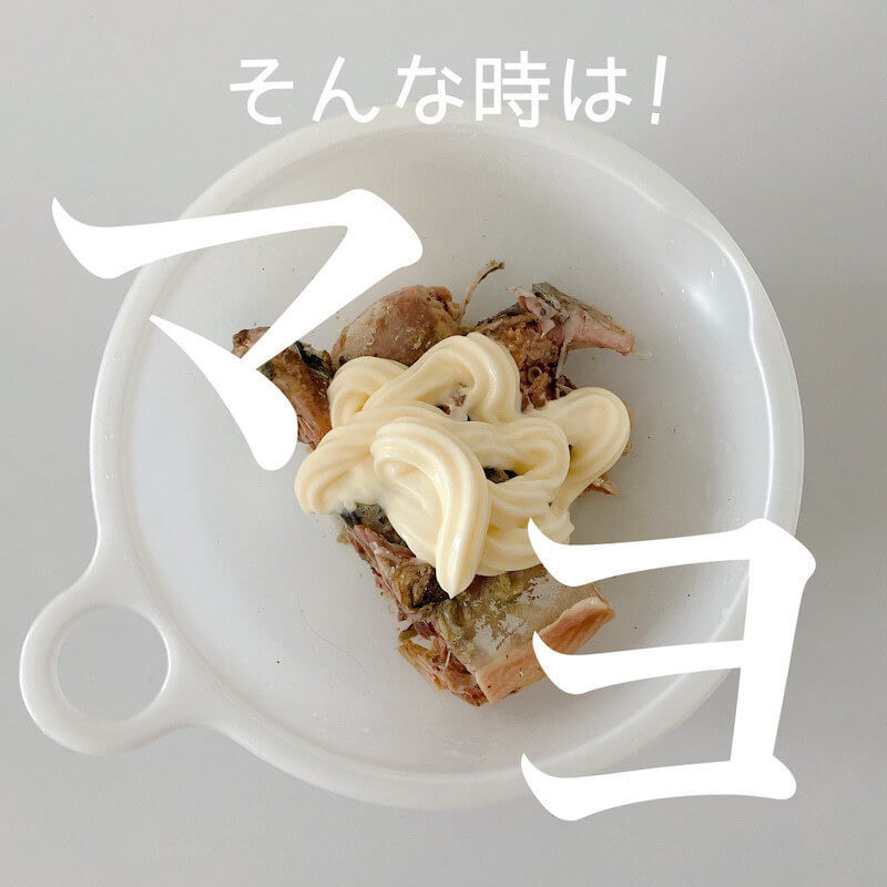 脂の乗りが悪いサバ缶には、マヨを入れるとたいがい