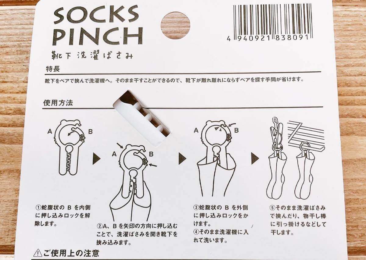 ダイソー「SOCKS PINCH 靴下洗濯ばさみ」
