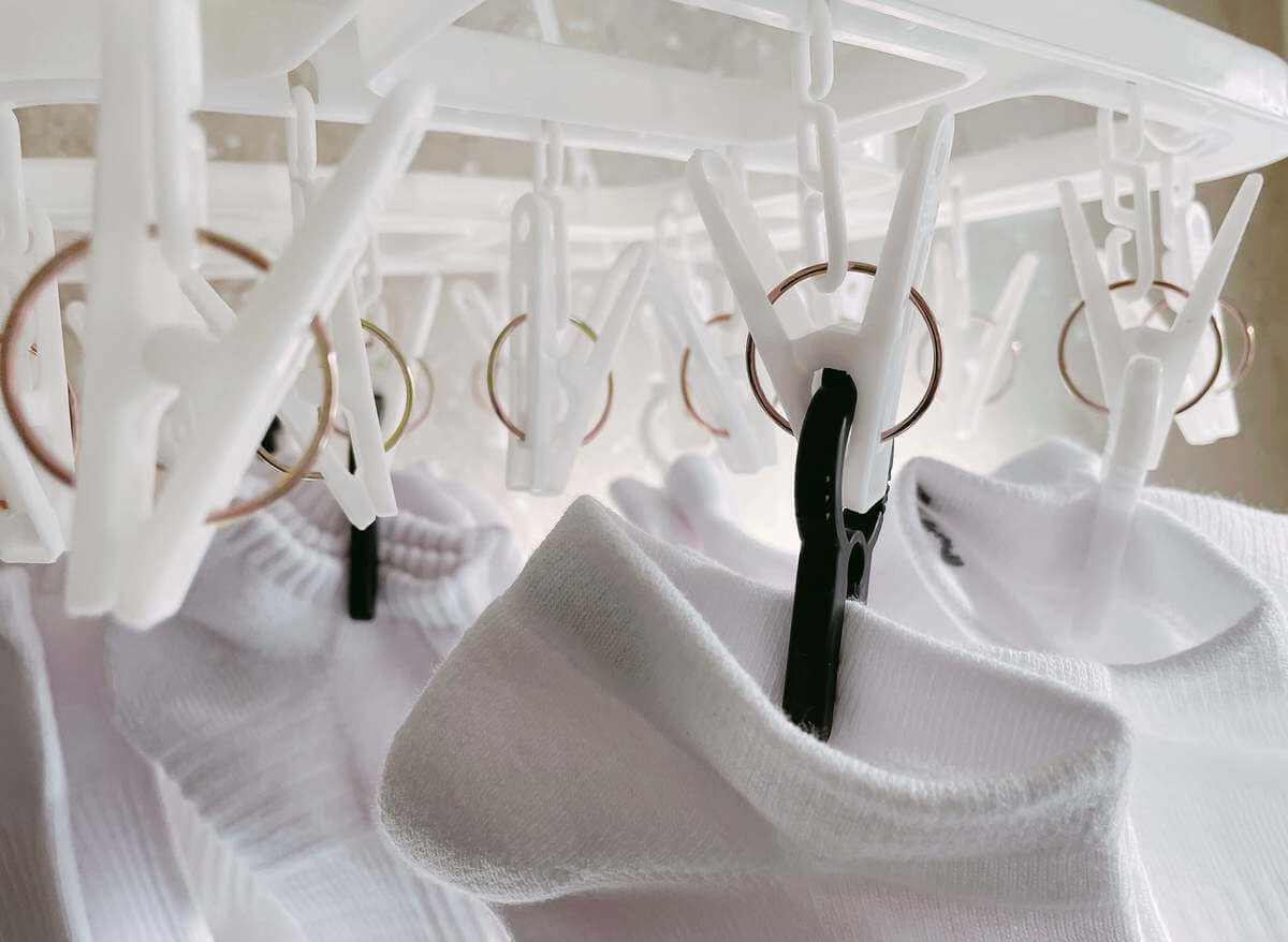 ダイソー「靴下洗濯ばさみ」を使てみた!そのまま干せば行方不明問題も解決