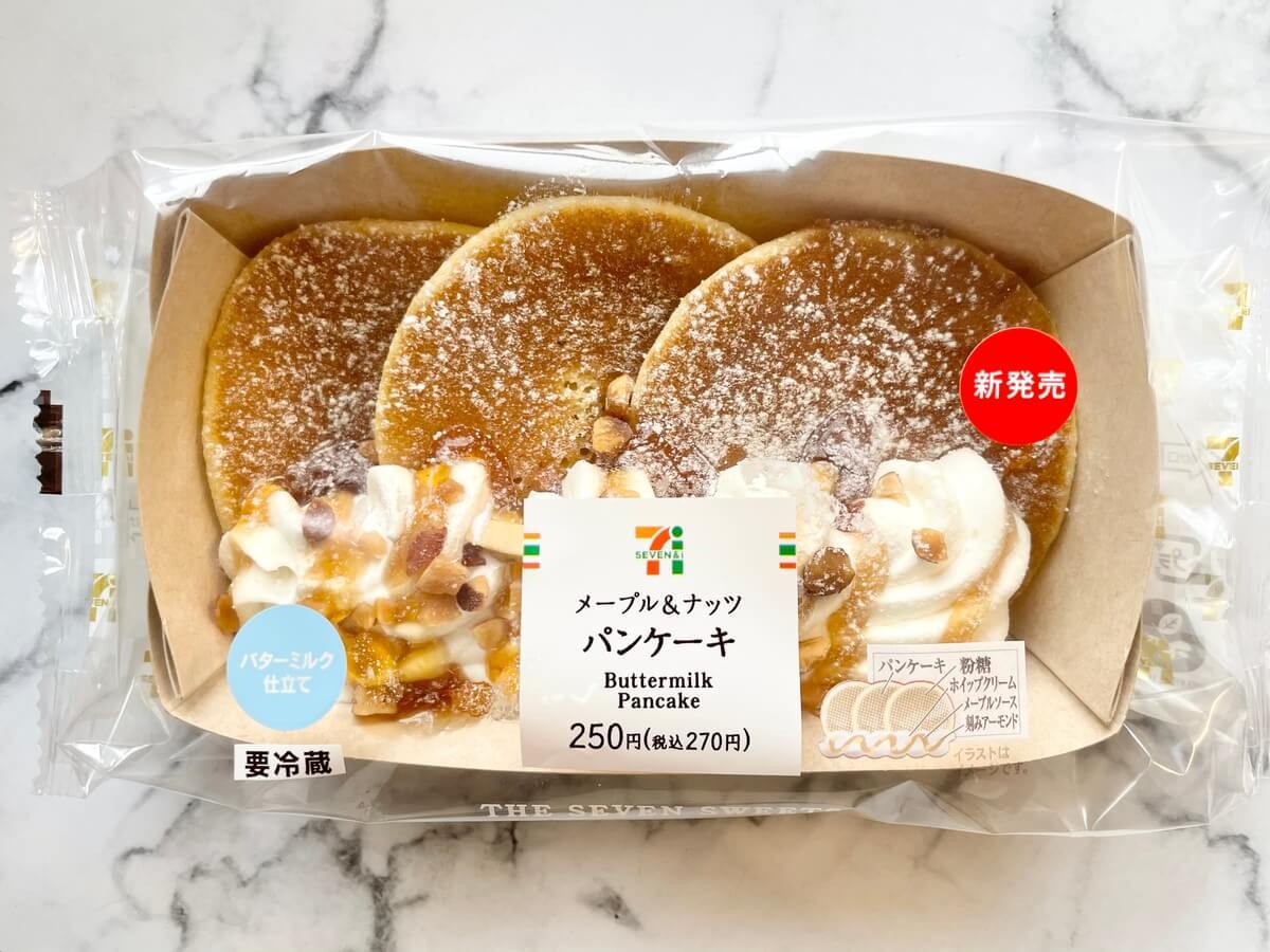 3枚入り270円ってコスパ高すぎ【セブンイレブン「メープル&ナッツ パンケーキ」】実食レポ