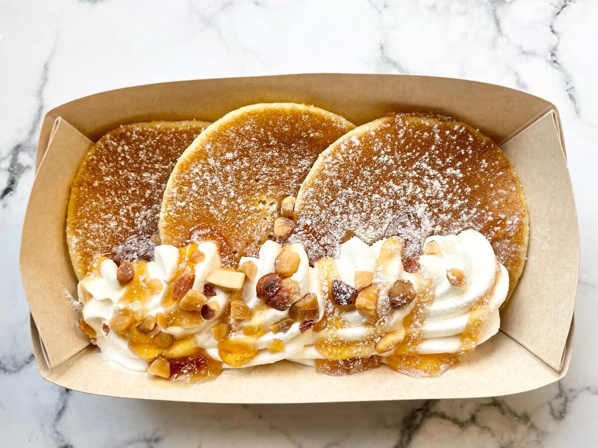 しっかりと焼き色が付いたパンケーキが食欲をそそります。