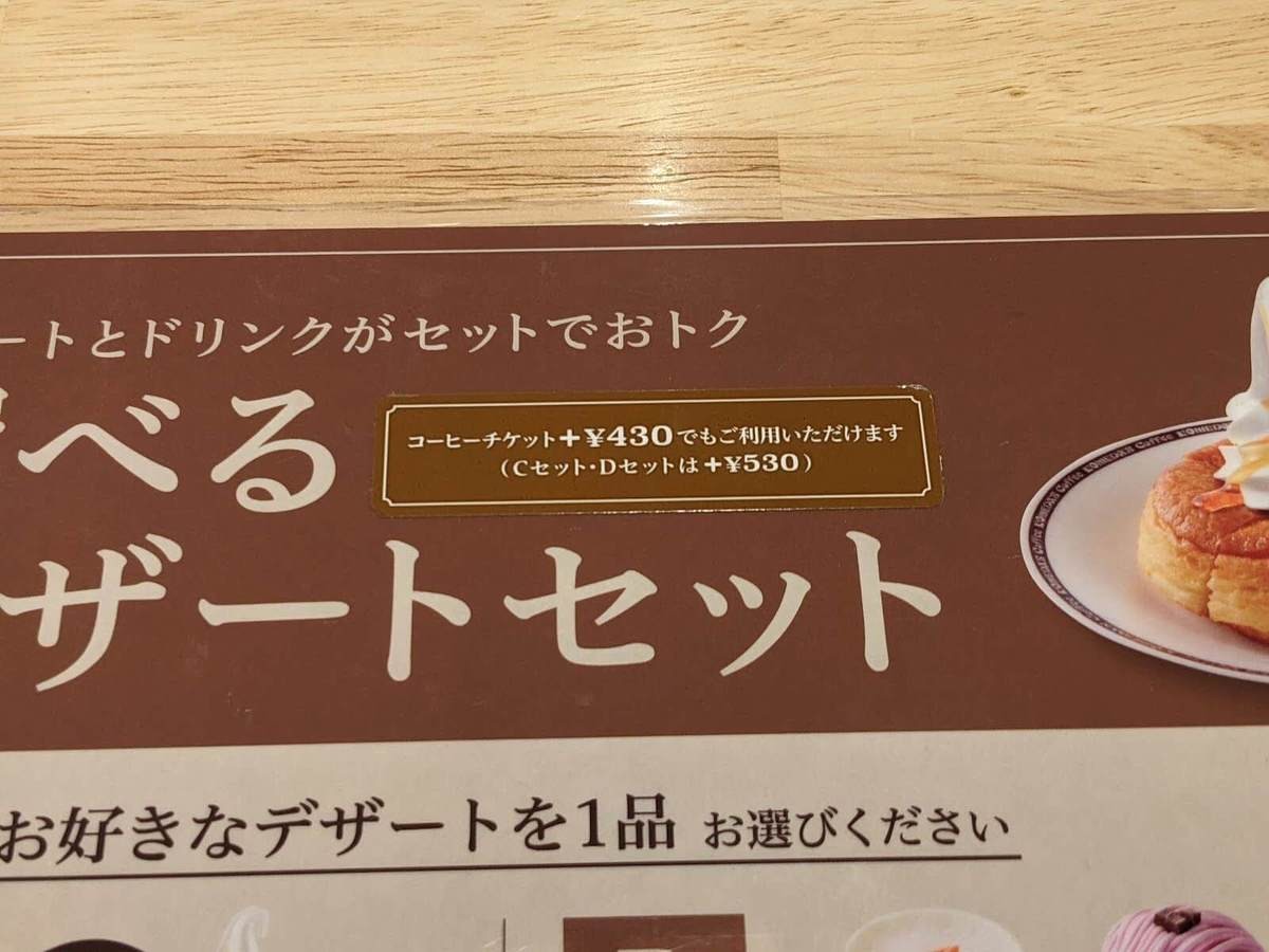 ただし、一部店舗ではコーヒーチケットにプラス430円(Cセット・Dセットはプラス530円)で利用できる店舗もあるようです。直接店舗にご確認ください。