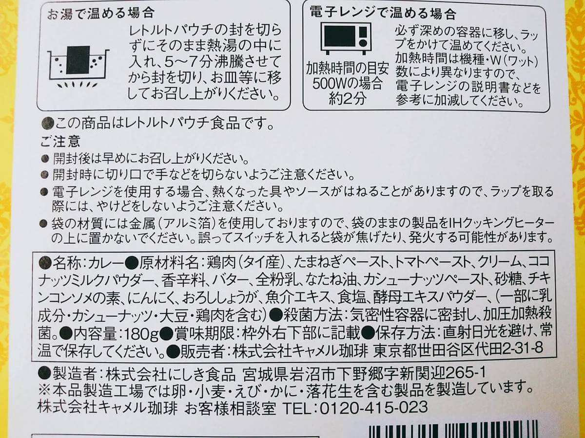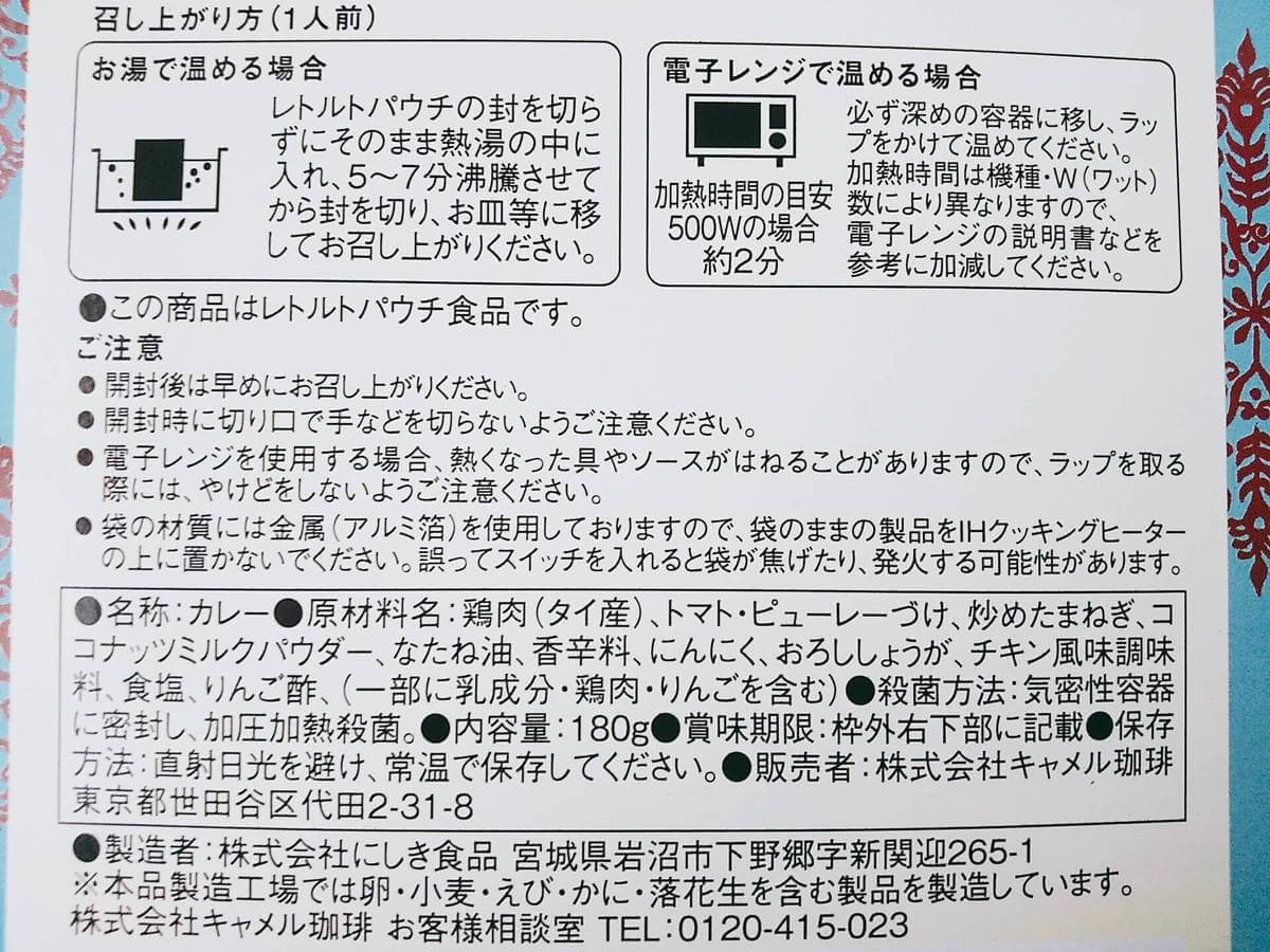 具体的にどんな香辛料が使われているのか気になりますが、原材料を見ると「香辛料」とザックリと記載されていました。