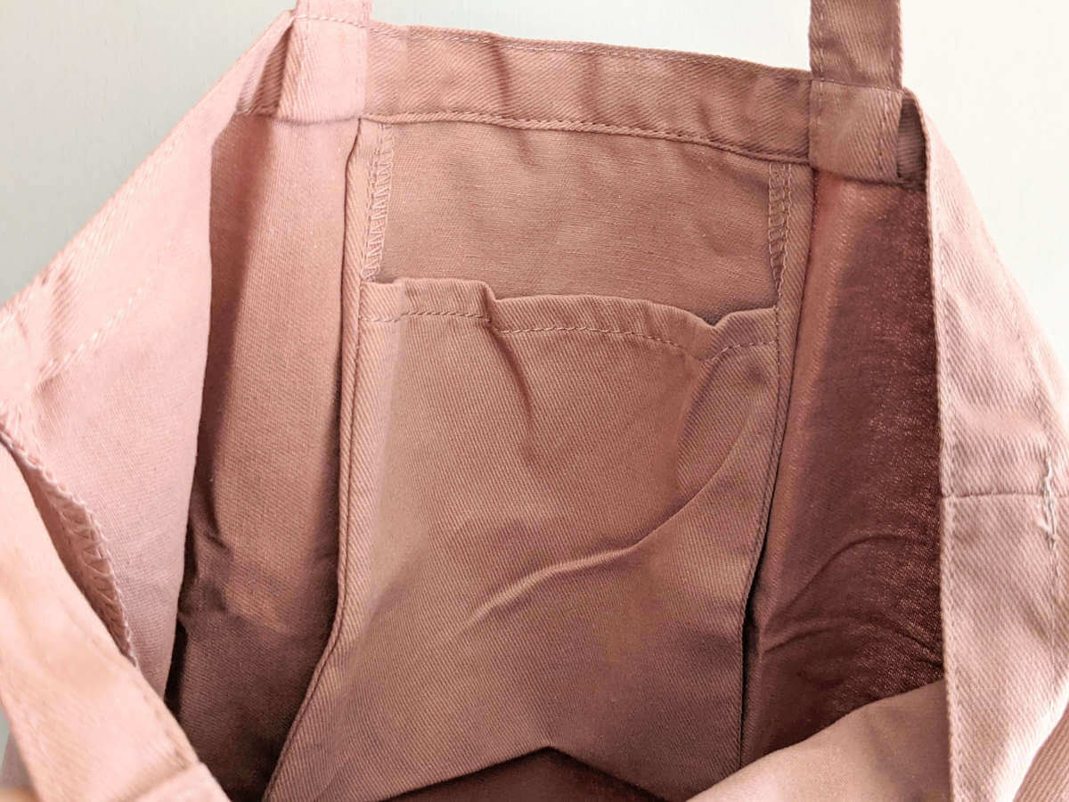 こちらのエコバッグには内ポケットが付いています。 ポケッタブル仕様なので、使わないときは小さく折りたたんで内ポケットに収納できます。