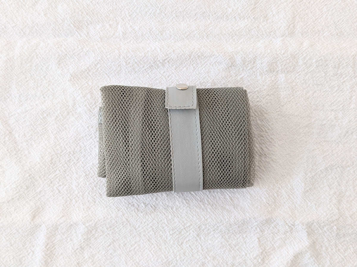 使わないときは小さく折りたたんでおけるため携帯しやすいです。 メッシュ素材のエコバッグは、洋服のアクセントにもなってくれるので、これからの季節は何かと出番が多そうです。