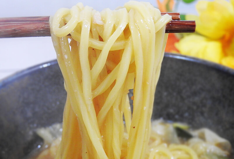 濃厚なスープがツルツルとした麺に絡み合い、一体感が出ています。お持ち帰りカレーとは違って王道の味わい。少々味が濃いので、後で少しだけお湯を足して薄めにしてもいいかも。