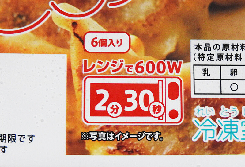 食べる時は、電子レンジ調理では、約3分(600W)か3分20秒(500W)、フライパン調理では中火で約2~3分で完成です。