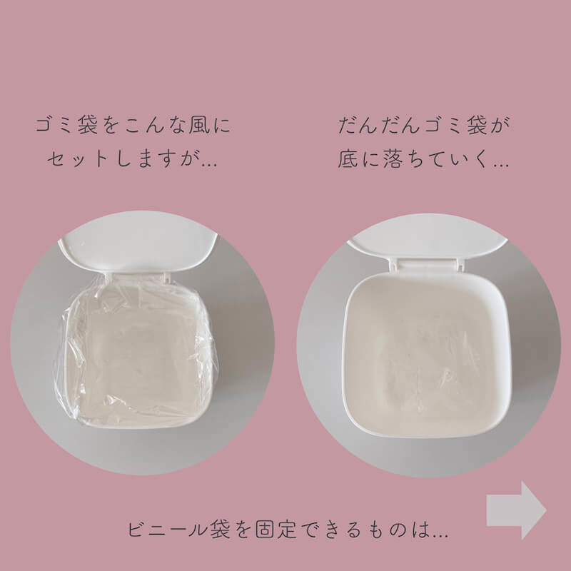 ゴミ箱に入れた、ゴミ袋が固定されていないので どんどんゴミと共に押し込まれて行くんですよね(汗)