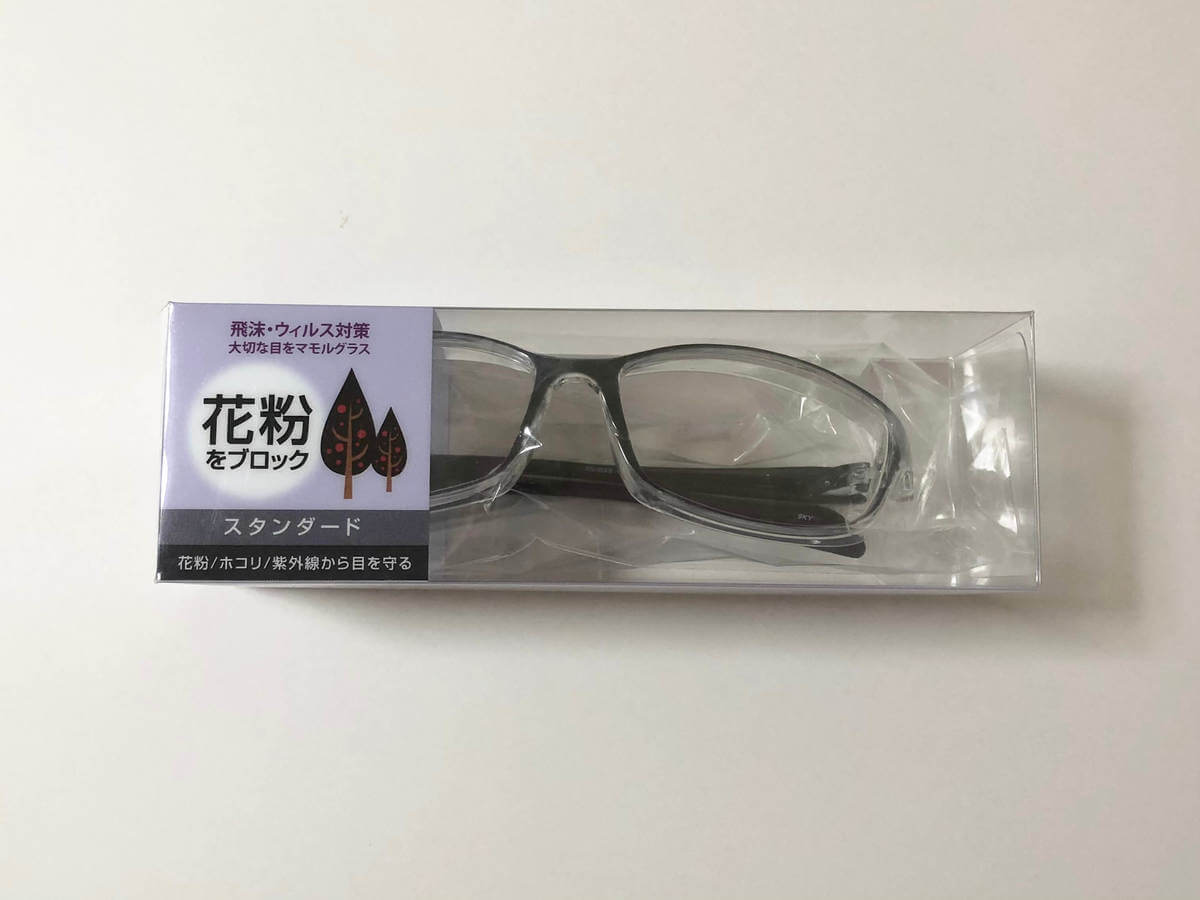 ちなみにガードされているからといって、水中メガネのようにまったく空気が入らないわけではありません。それでもだてメガネとかけ比べると、花粉が入ってこないのを実感します。