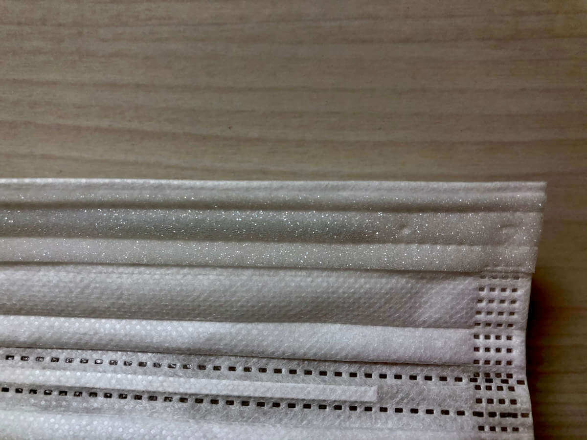 ノーズ部分がスポンジのような素材でできています。写真のラメの部分ですが、ザラザラすることはなく、むしろクッションのように柔らかく気持ちいい素材です。鼻まわりにぴたりとフィットし、空気漏れがとても少なくなり、結果メガネが曇りにくくなります。